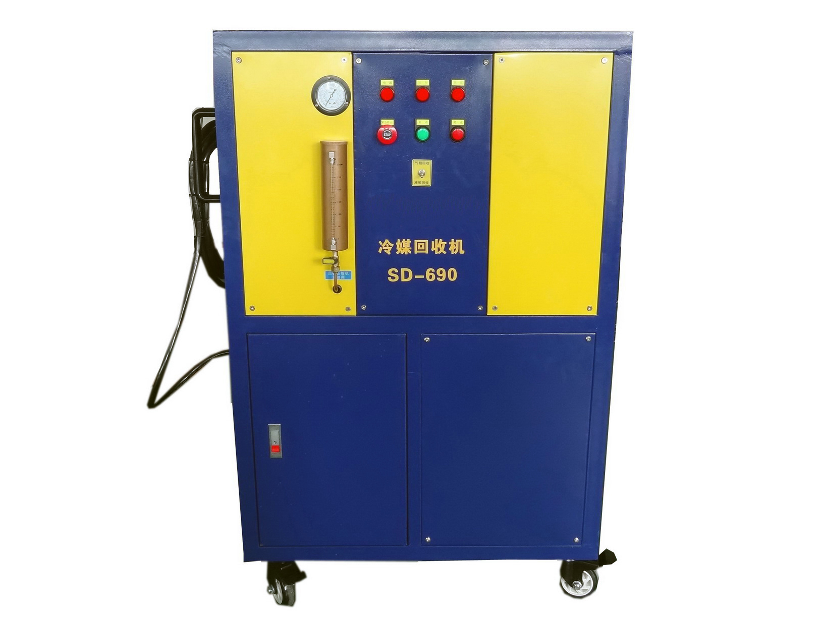 一種回收制冷劑的設備,用于回收制冷機械(冰箱、空調(diào)、冷柜等制冷機)中的制冷劑?;厥盏耐瑫r又對制冷劑進行一定的處理,如干燥、雜質(zhì)的過濾、油分等,以便于制冷劑的二次利用。