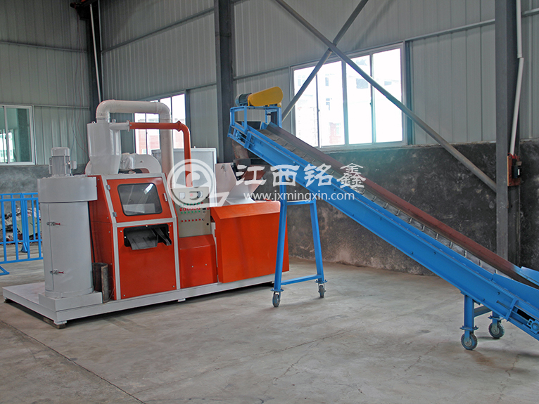 自動(dòng)化一體銅米機(jī)是專業(yè)干式分離廢舊電線電纜的生產(chǎn)線。例如:舊汽車電路線,通訊電纜線,以及剝線機(jī)不適合加工(各種民用電線)廢舊雜料電線.毛絲細(xì)線等.此機(jī)的特點(diǎn)是大小線不用分類可以同時(shí)破碎分離,結(jié)構(gòu)新型,生產(chǎn)量大,耗電少,分選率高,一次投料,多機(jī)協(xié)作完成。全線由PLC控制,在國(guó)內(nèi)處于領(lǐng)先水平。該機(jī)的開發(fā)成功,即解決了焚燒取銅方法中出現(xiàn)的問(wèn)題,又能提高回收銅的質(zhì)量,并可將塑料回收利用,同時(shí)解決環(huán)境的污染。