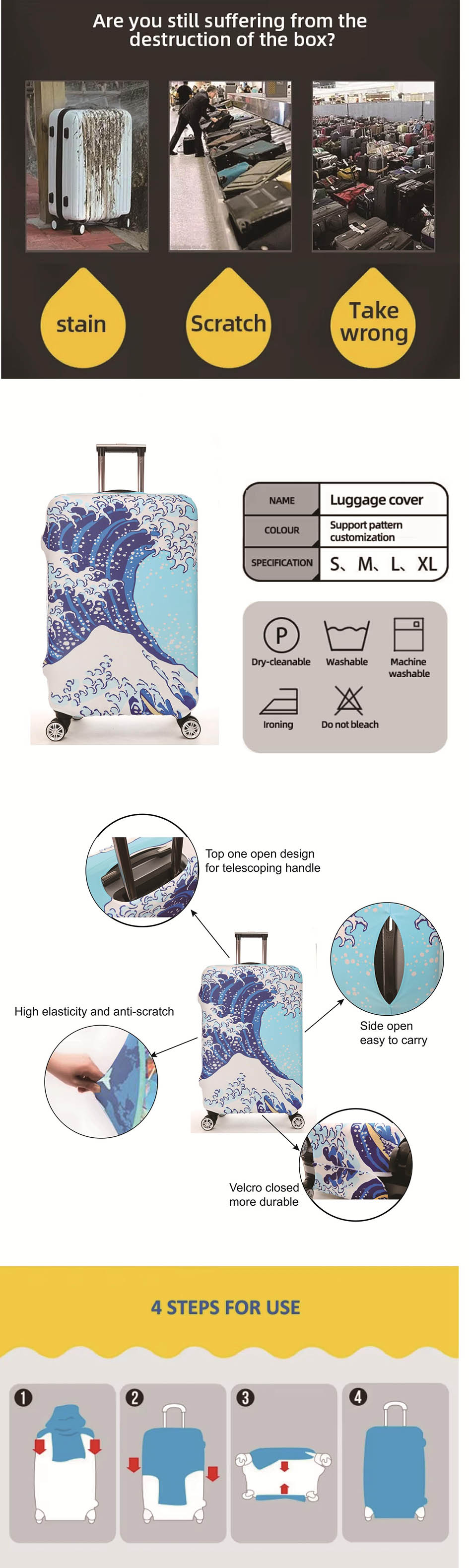 1.?Customized Design and easy to Identify:?This luggage cover allows users to create a unique and personalized design, making it easy to identify their luggage among others.