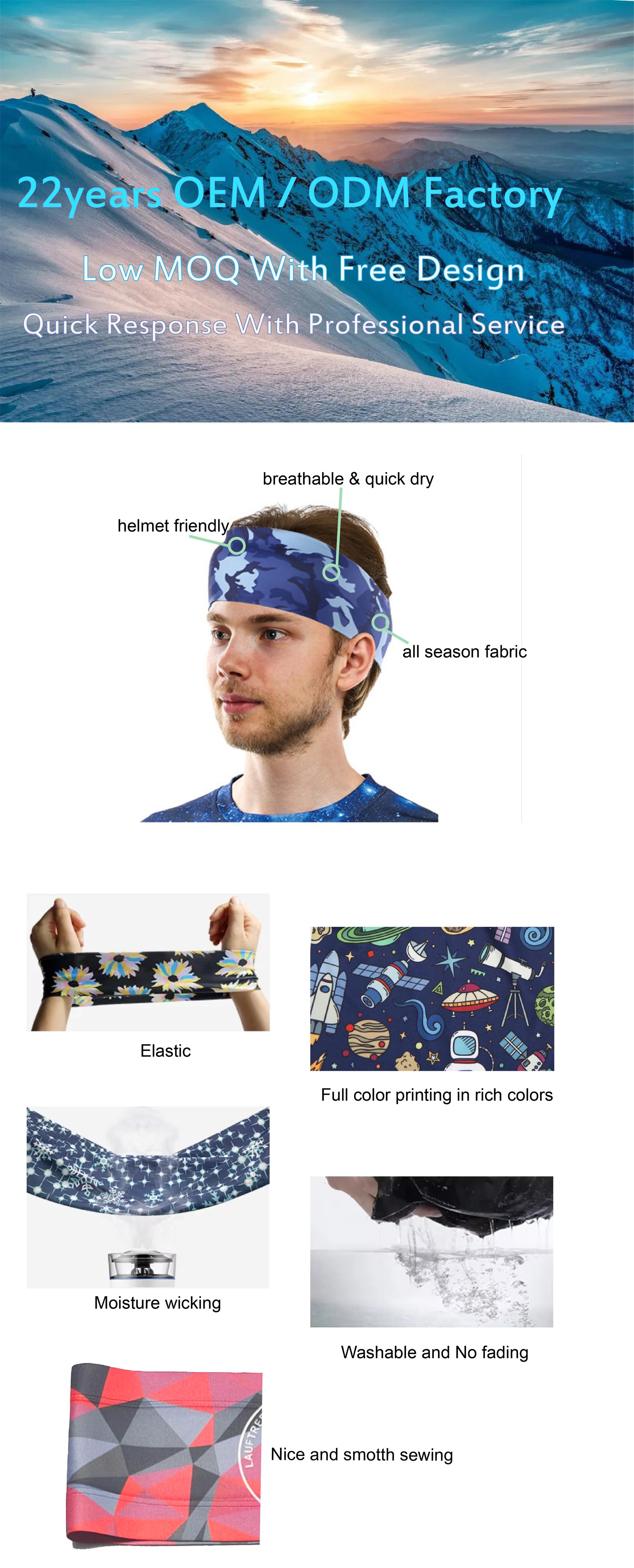 Custom sport headband in polyester, full color printing, 1 layer