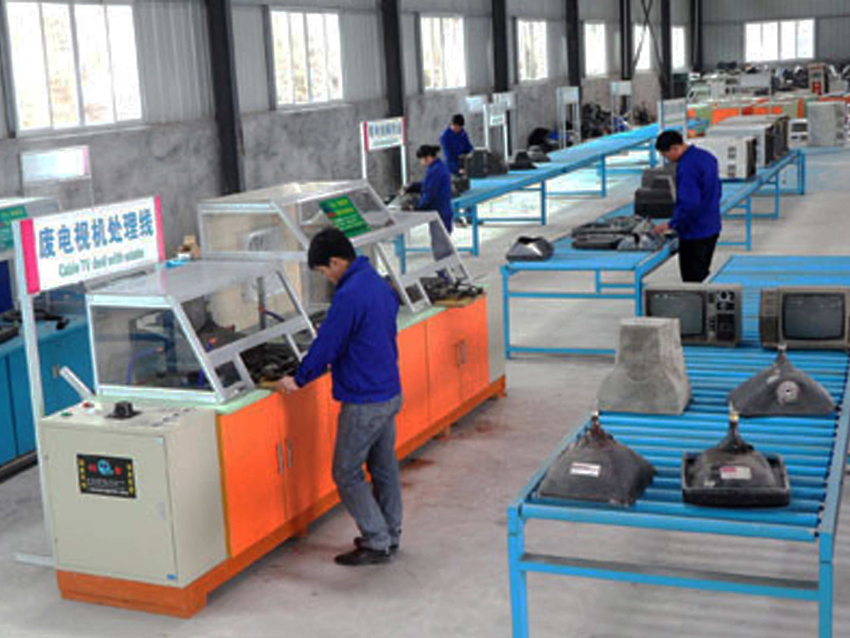 設(shè)備利用合理的物理原理,首先拆解電視機(jī)外殼、顯像管、印刷電路板等,然后采用鋼絲(帶)加熱切割法,來分離熒光幕的屏玻璃和錐玻璃,集中收取內(nèi)含的熒光粉。